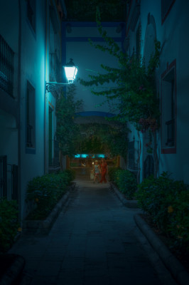 At night